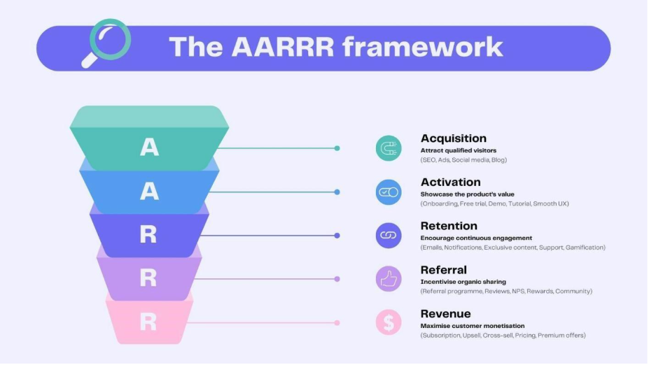 To manage that relationship, she introduced a full AARRR lifecycle model—a framework widely used in digital startups that tracks a user’s journey from acquisition to activation, retention, revenue generation and referral.